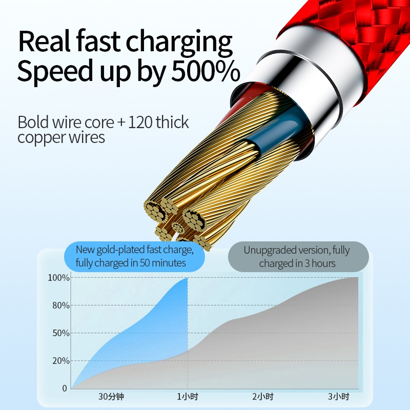 120W Usb Fast Charging Data Cable Universal 3 In 1 Multiple Usb Cord With ,Type-C, Micro