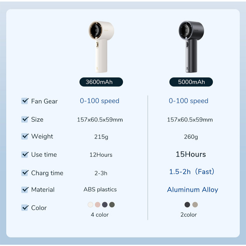 Best Feature(s):powerful Value For Money:good Product Quality:good Best hand held powerful fan EVER !! Recommended my Sister-in-law to buy !! Bought this beautiful white colour for my daughter. Will be buying again for myself ! A friend recommended this Jisu Live - SO GLAD I found it !! Definitely No Regrets !!! Will recommend all my friends ! Very Good Buy - Worth every cent !!